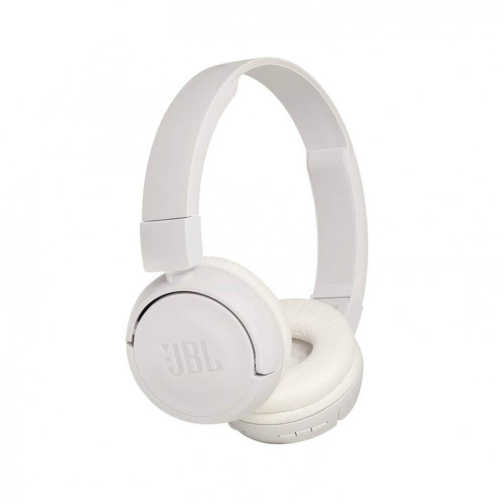Introducing JBL T460BT on-ear wireless headphones. They’re flat-folding, lightweight, comfortable and compact. Under the hood, a pair of 32mm drivers punch out some serious bass, reproducing the powerful JBL Pure Bass sound you’ve experienced in much bigger venues. Music and call controls/microphone are placed on the earcup. And because your music should go where you go, you’ll get up to 11 hours of uninterrupted audio playback on a single charge.